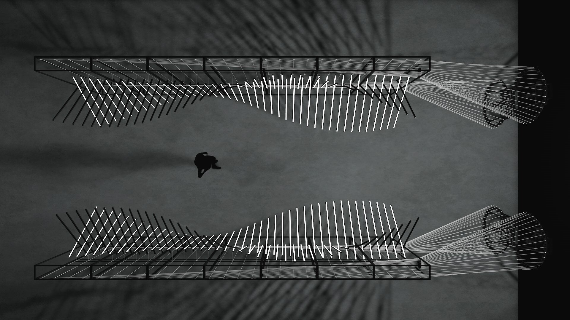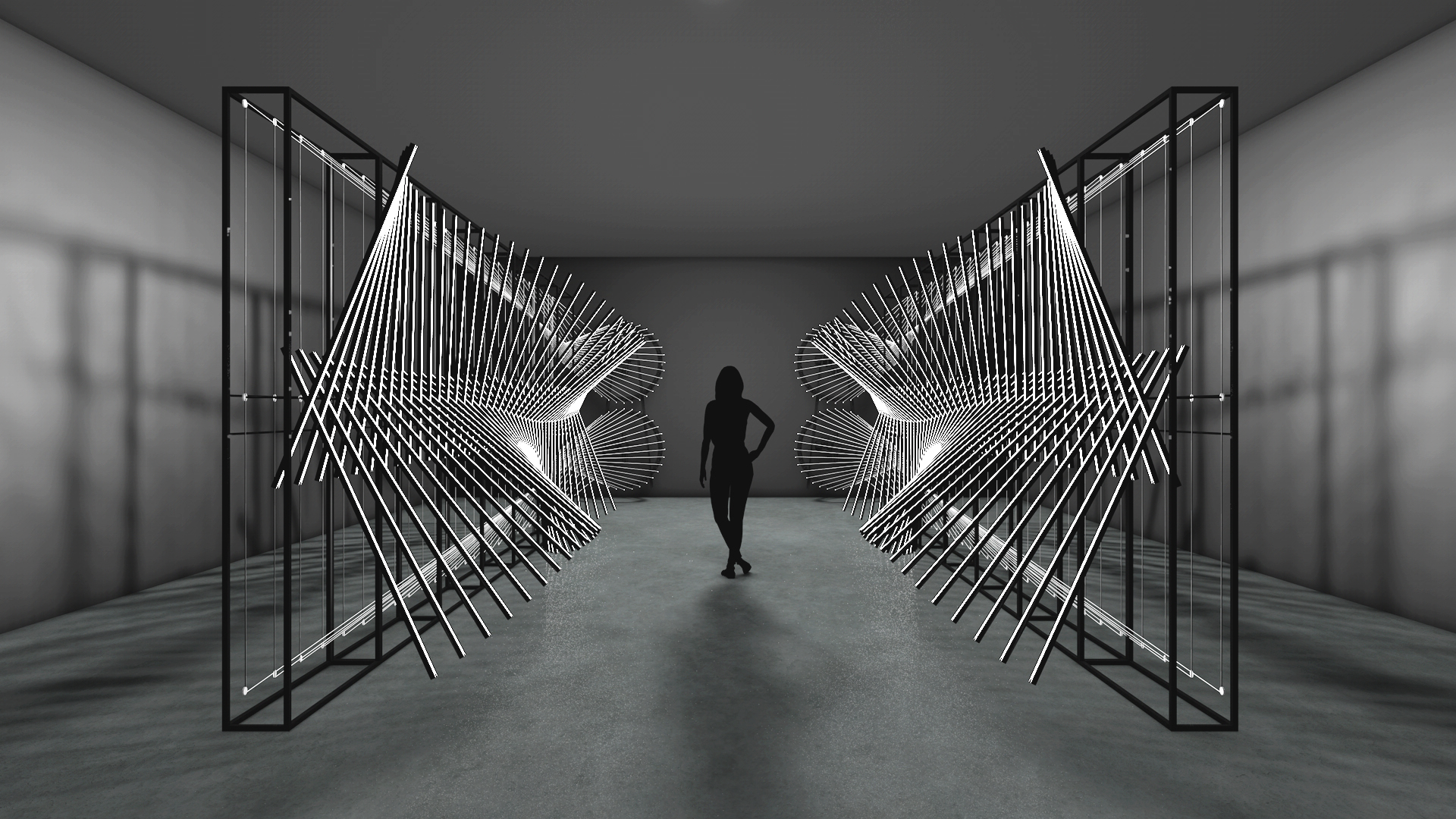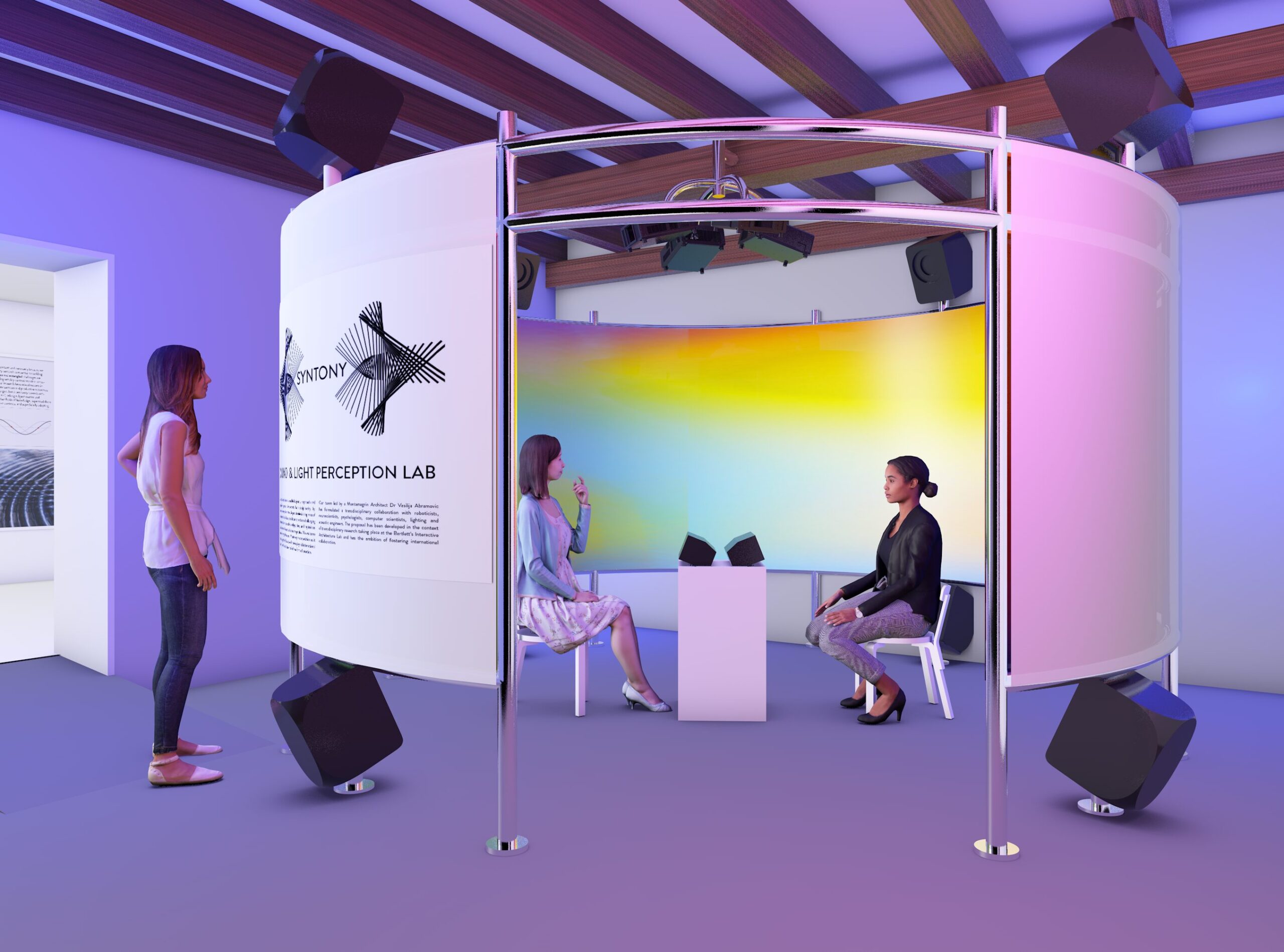 Developed through collaborations across neuroscience, robotics, psychology, computing, lighting, and acoustics, Syntony manifested as a series of interactive laboratories exploring motion, light, and sound. Visitors would enter responsive environments where automated sensing systems gathered data and generated waveforms that visualised the flow of perception. The kinetic Motion Perception Lab was intended to reveal how architectural space could resonate—literally and conceptually—with the shared frequencies of art, science, and technology.