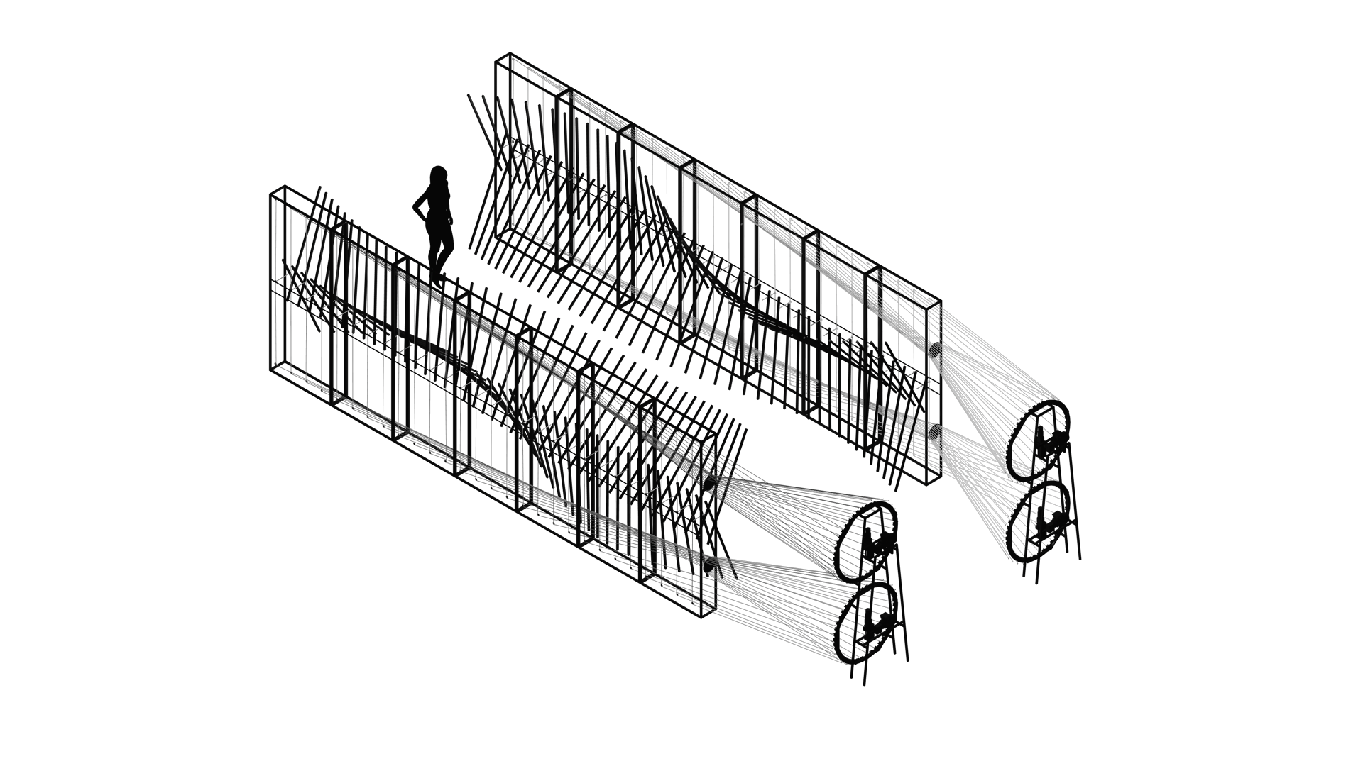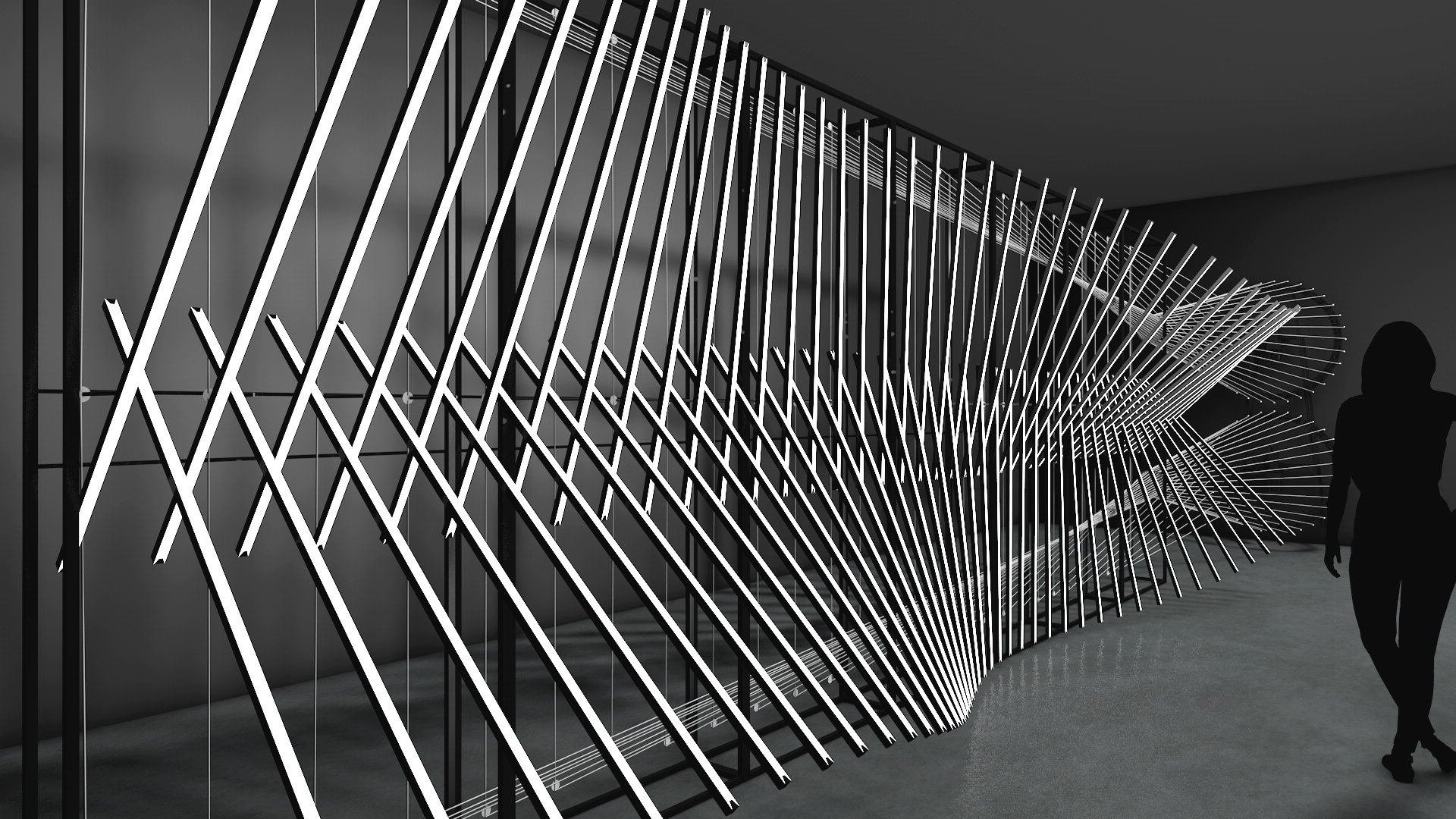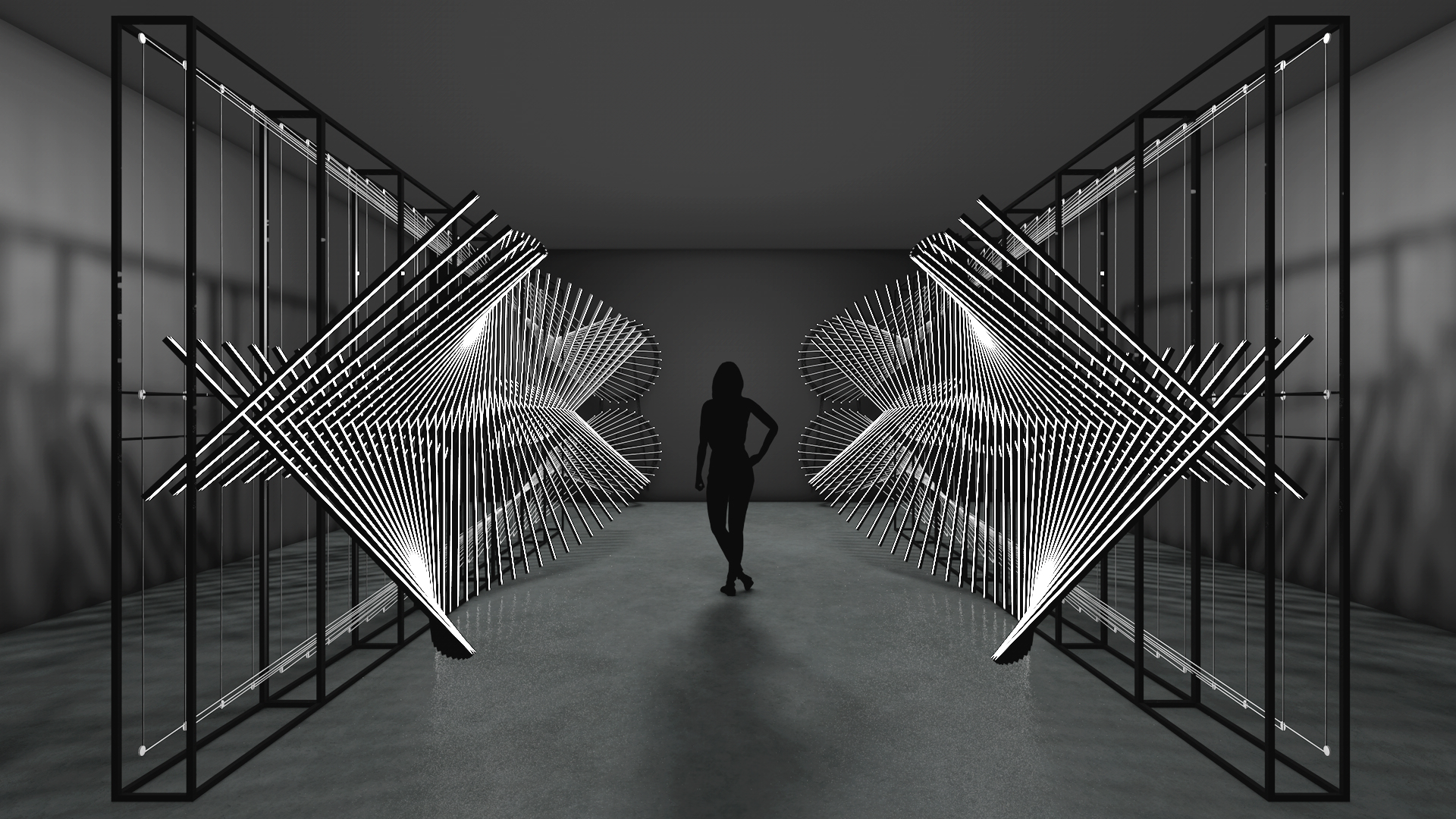 Developed through collaborations across neuroscience, robotics, psychology, computing, lighting, and acoustics, Syntony manifested as a series of interactive laboratories exploring motion, light, and sound. Visitors would enter responsive environments where automated sensing systems gathered data and generated waveforms that visualised the flow of perception. The kinetic Motion Perception Lab was intended to reveal how architectural space could resonate—literally and conceptually—with the shared frequencies of art, science, and technology.